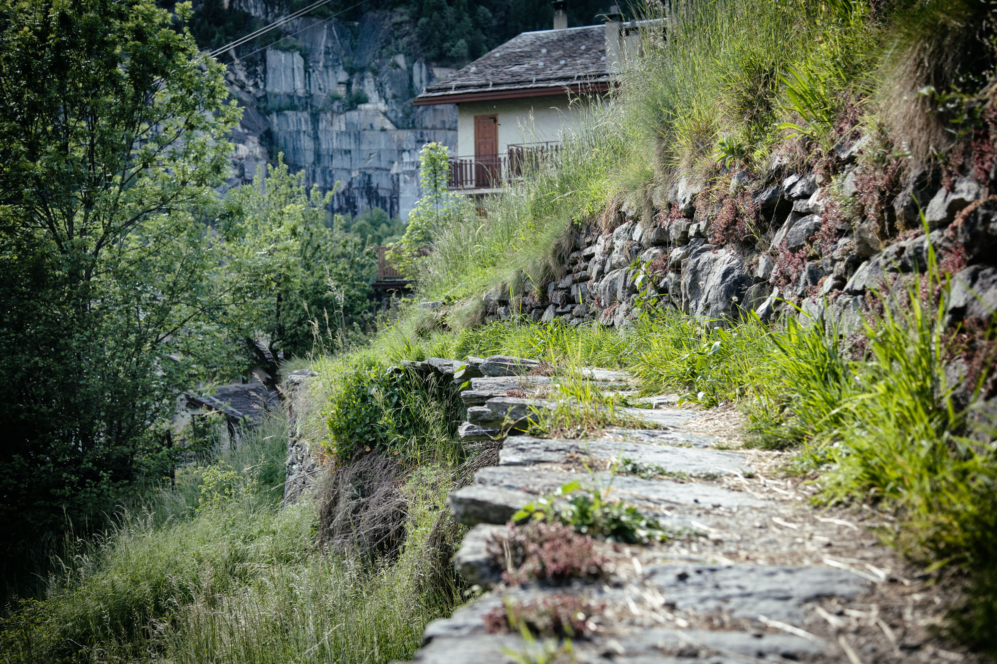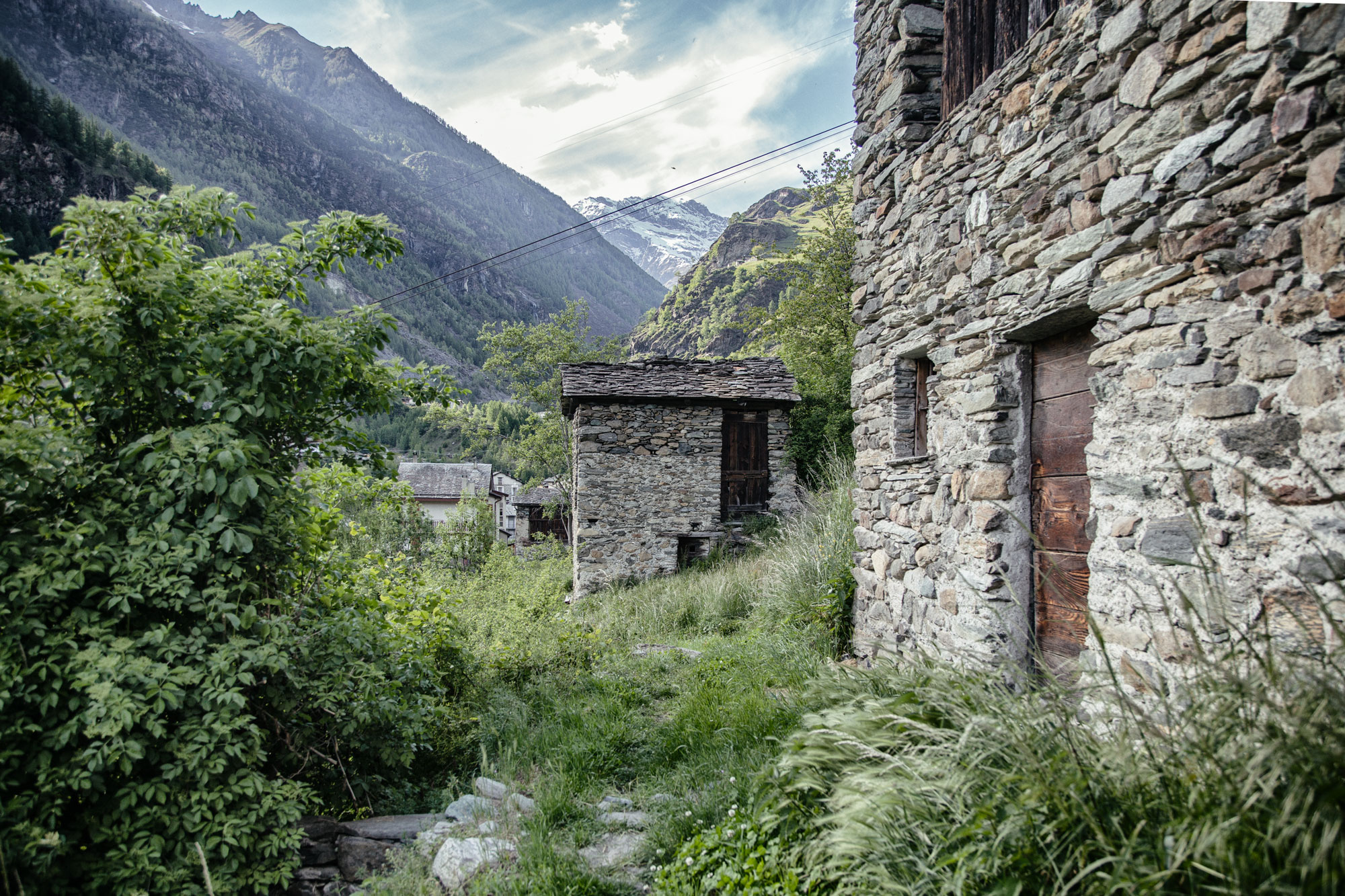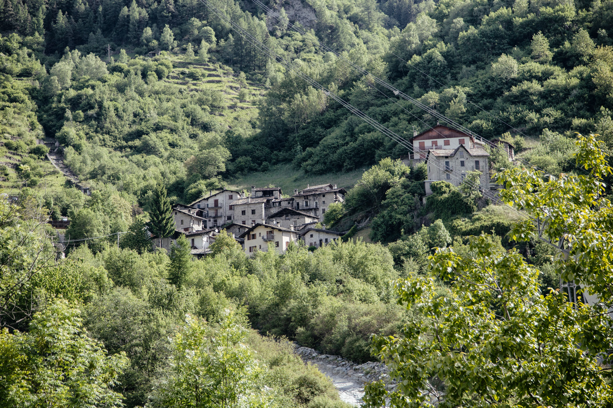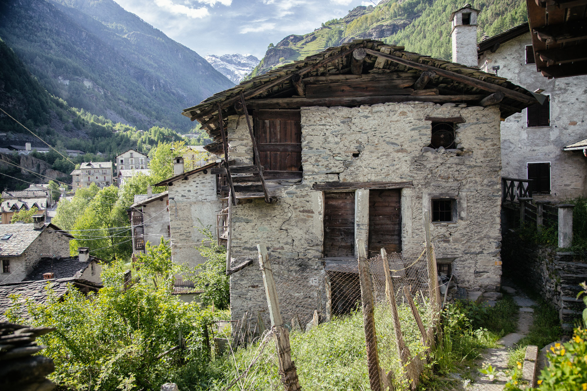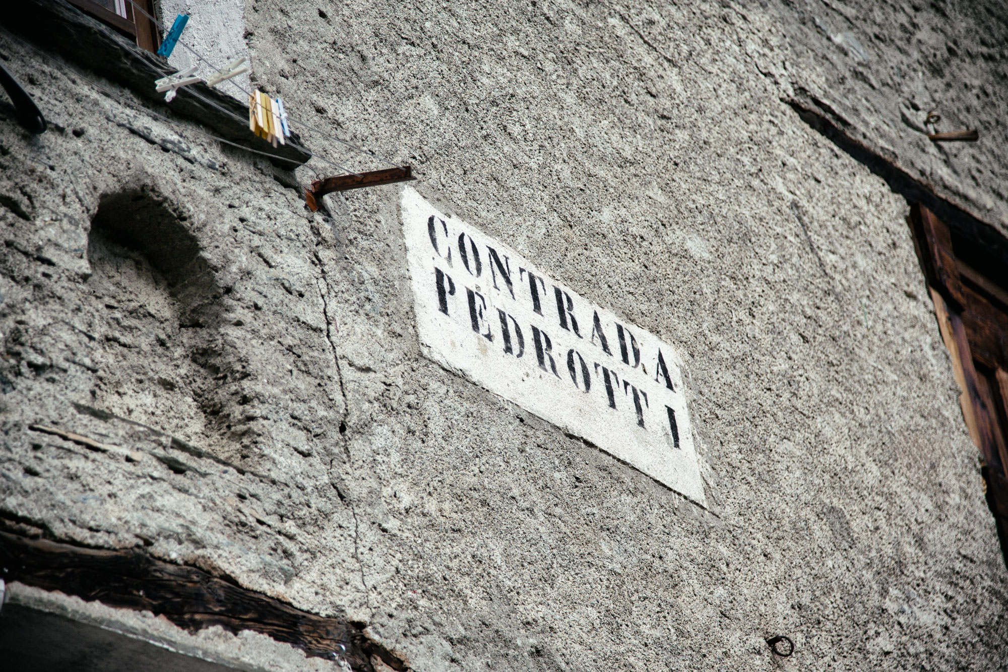 La contrada Pedrotti (pëdròt) è un antico nucleo abitativo, posto sulla sinistra del Rovinone, di fronte alla contrada Curlo, che sta sulla destra, a cui un tempo apparteneva. È collocata a 1038 m di quota ai piedi delle pendici del Monte Motta, su una sponda soleggiata, a monte della piscina della Valmalenco e della partenza delle Funivia che porta all’alpe Palù. Le costruzioni a due o tre piani sono allineate secondo le curve di livello, contigue e con le facciate a capanna rivolte a valle, definendo un particolare impianto topografico. La tipologia prevalente corrispondeva all'edificio ad uso promiscuo a tre piani, con stalla, abitazione e fienile sovrapposti, o su due livelli, con stalla ed abitazione adiacenti e soprastante fienile raggiunto da scala esterna in pietra o legno. La contrada è adagiata alla base di una sponda terrazzata, caratterizzata dalla presenza di due edifici rurali isolati a uso fienile (maśùm) in cui si conservava il fieno proveniente dallo sfalcio dei terrazzi più in basso.