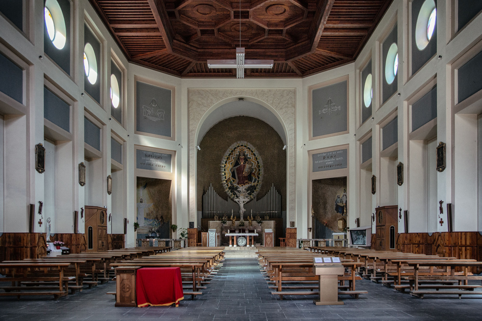 Il Santuario della Madonna degli Alpini di Chiesa in Valmalenco è un importante luogo di culto sorto nella seconda metà del Novecento, noto per il suo valore artistico e simbolico. Al suo interno spicca un imponente mosaico absidale, realizzato con marmi e smalti, che raffigura Maria in trono col Bambino, ricco di simbolismi religiosi e culturali legati al mondo alpino. Di grande interesse anche le sculture in pietra ollare e legno che celebrano la figura dell’Alpino, realizzate da artisti locali. Il santuario conserva inoltre una preziosa Via Crucis settecentesca attribuita ai Ligari, pittori di rilievo della Valtellina. Luogo di arte, fede e identità, il santuario rappresenta una sintesi tra patrimonio culturale e paesaggio montano, testimoniando il profondo legame tra la comunità locale e la sua storia religiosa.