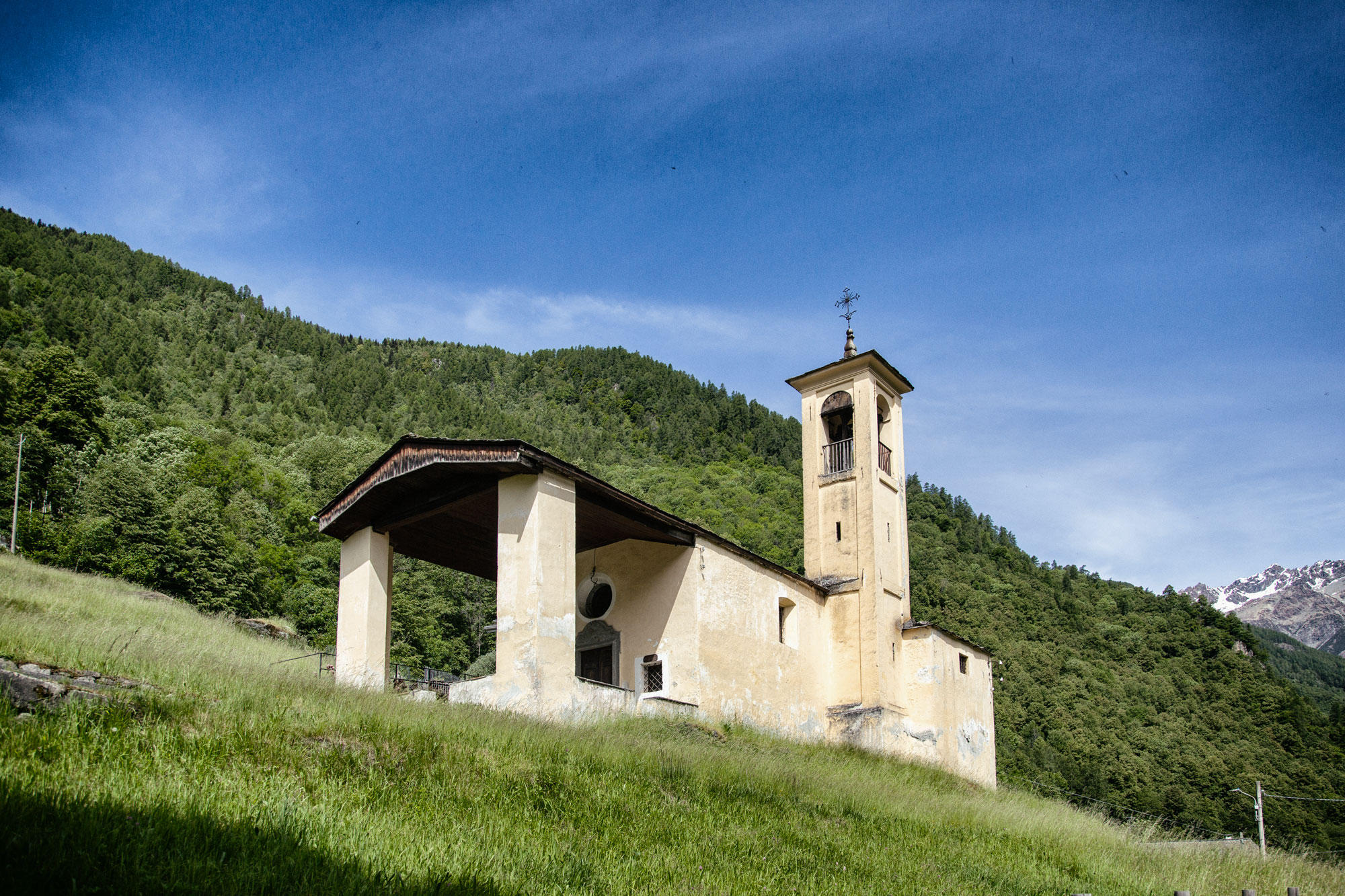 Nell’antica contrada di Cà Bianchi a Torre di Santa Maria, sorge la suggestiva chiesetta di San Giuseppe. Edificata verso la fine del XVI secolo, presenta un’architettura insolita per la valle, con un elegante portico sorretto da robusti pilastri che introduce la facciata. La facciata settecentesca è caratterizzata da un portale in pietra, due finestre laterali con grate e una finestra tonda sopra il portale. Il campanile, posto a destra, si eleva con una cella campanaria molto alta.