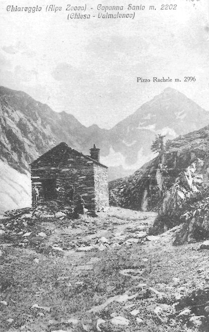 Sull’esempio della famiglia Lenatti, che nel 1925 realizzò la Capanna Nuccia, anche Santino Schenatti – noto in Valmalenco come “el mat Sant ” e padre del futuro conquistatore della parete nord del Monte Disgrazia – decise di costruire un rifugio nei pressi dell'alpe Zocca, situata a 2190 metri di quota in alta Val Ventina, allora considerata un punto strategico per l’accesso ai versanti settentrionali del Monte Disgrazia. L’alpe Zocca (dal dialettale zòca, ovvero avvallamento) era raggiunta dagli alpinisti partendo da Chiareggio e passando per le Alpi Forbesina e Sentieri. Santino costruì il rifugio completamente da solo. Pur semplice e modesto, per alcuni anni fu un punto d’appoggio apprezzato da alpinisti ed escursionisti. I ruderi del rifugio Santo sono ancora visibili appena a monte dell'Alpeggio.