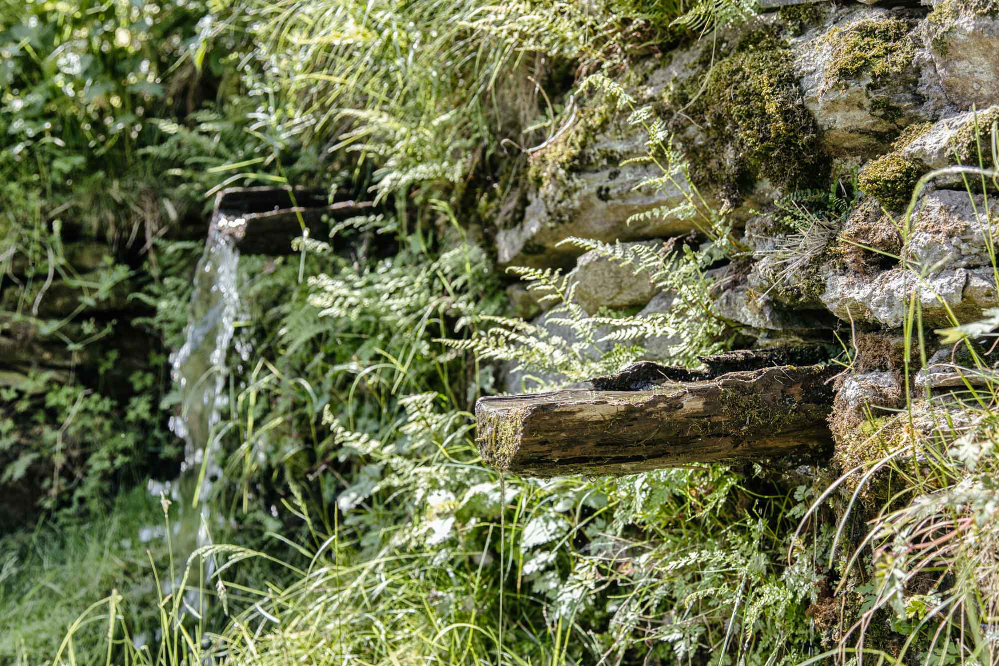 • sorgente a N della frazione müsc, a destra del ghèrn, circondata da prati, con acqua molto fresca attinta dagli abitanti di müsc quando non c'era ancora l'acquedotto. Era caratterizzata da una canaletta in legno che captava l'acqua sorgiva; ora ci sono due canalette in legno.