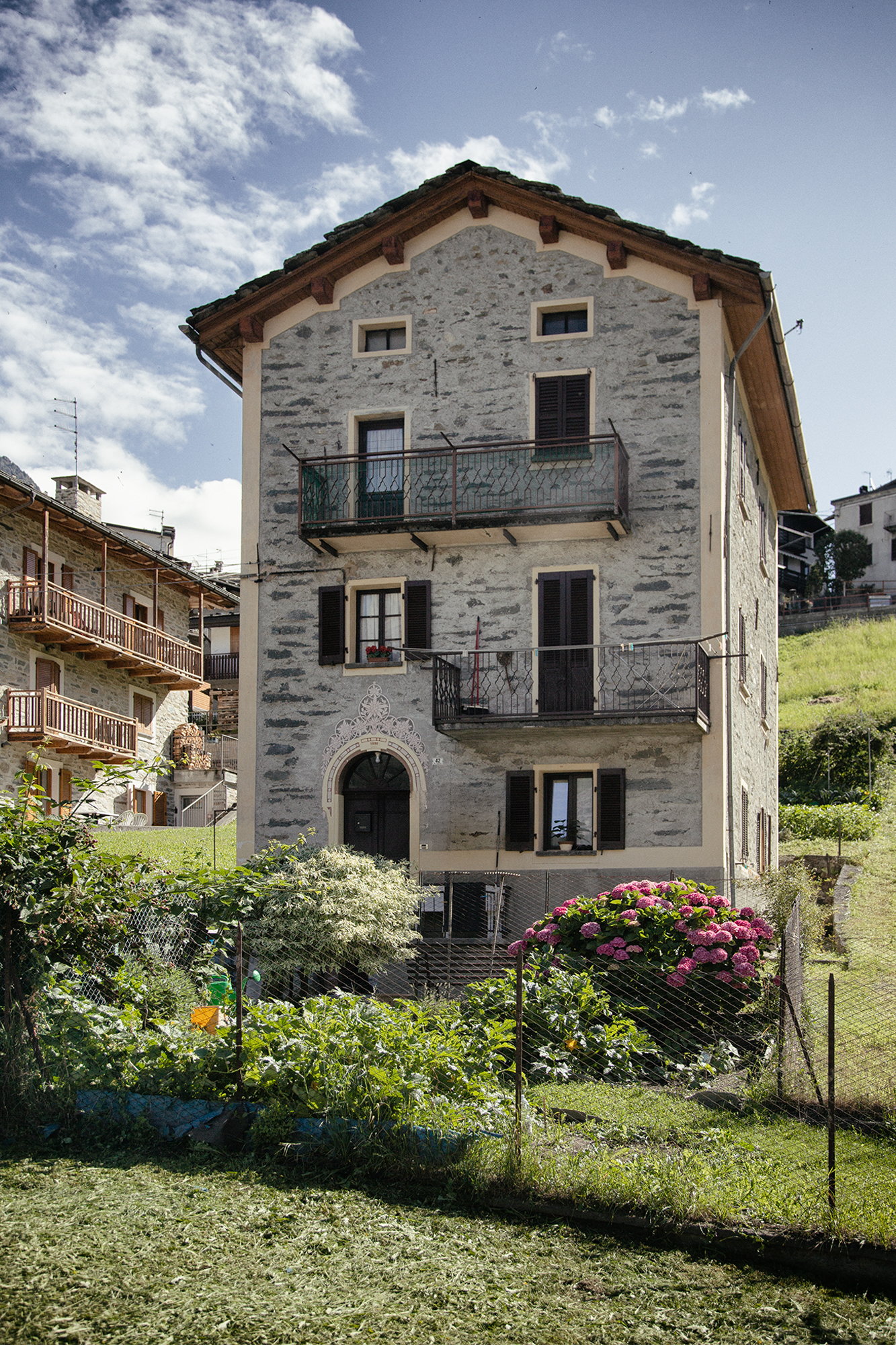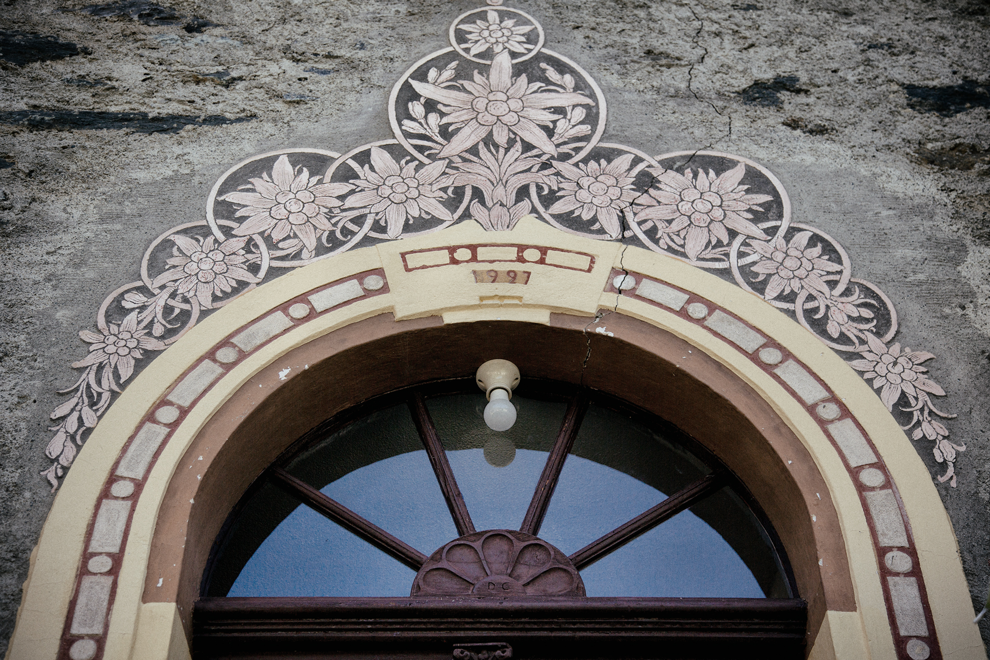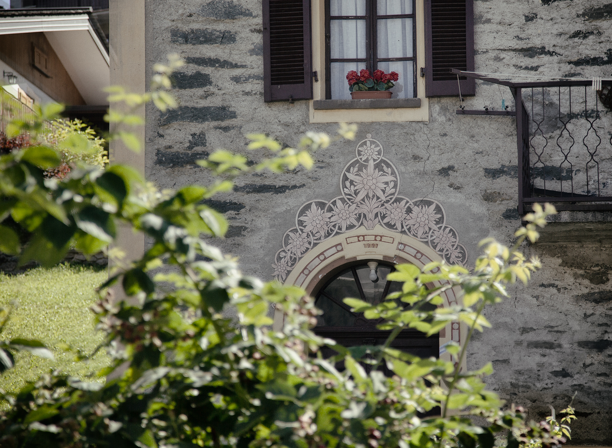 Realizzata nel 1927, la decorazione a graffito con stelle alpine si trova nel soprarco della porta d’ingresso di una casa situata accanto all’abitazione paterna di Erminio Dioli, un tempo appartenente al fratello minore Giuseppe. L’intervento, semplice ma ricco di significato, presenta una sequenza di stelle alpine di varie dimensioni, disposte a coronamento dell’arco d’ingresso.