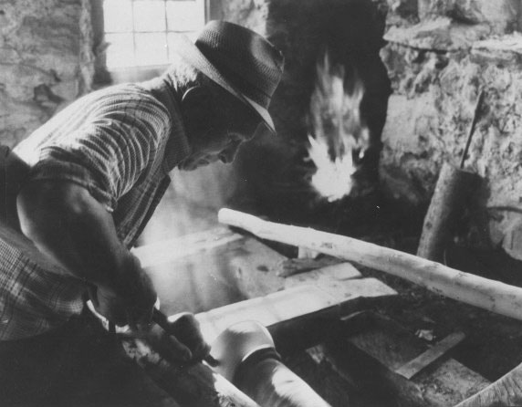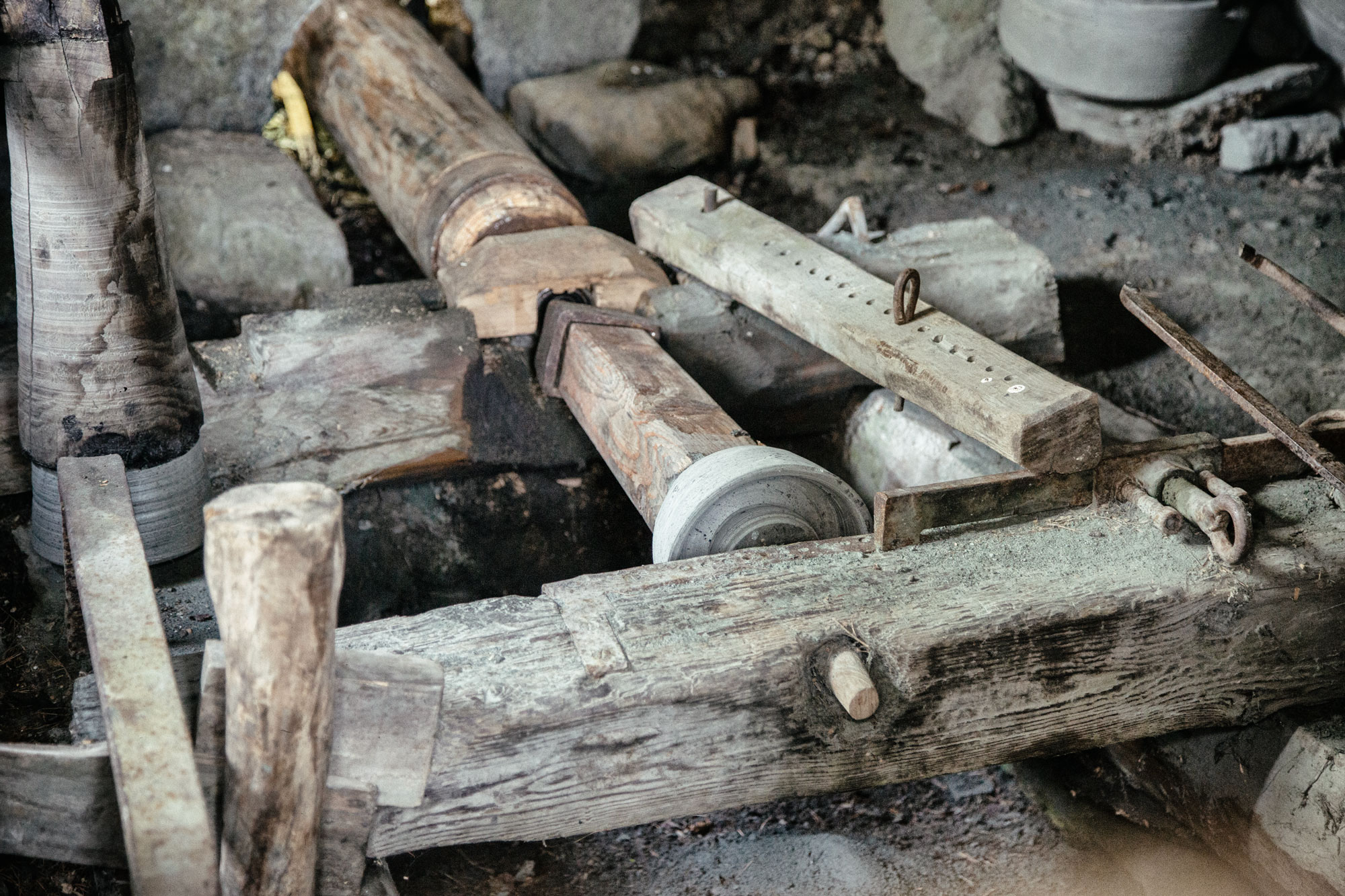 Il laboratorio (turn) era una struttura semplice, in muratura a secco, molto umida per la vicinanza dell’acqua. Il tornio tradizionale era quasi interamente in legno, costruito manualmente dall’artigiano. Prima della tornitura, il ciapùn veniva riscaldato e fissato con resina alla furma, un attrezzo tronco-conico che permetteva la rotazione del blocco.