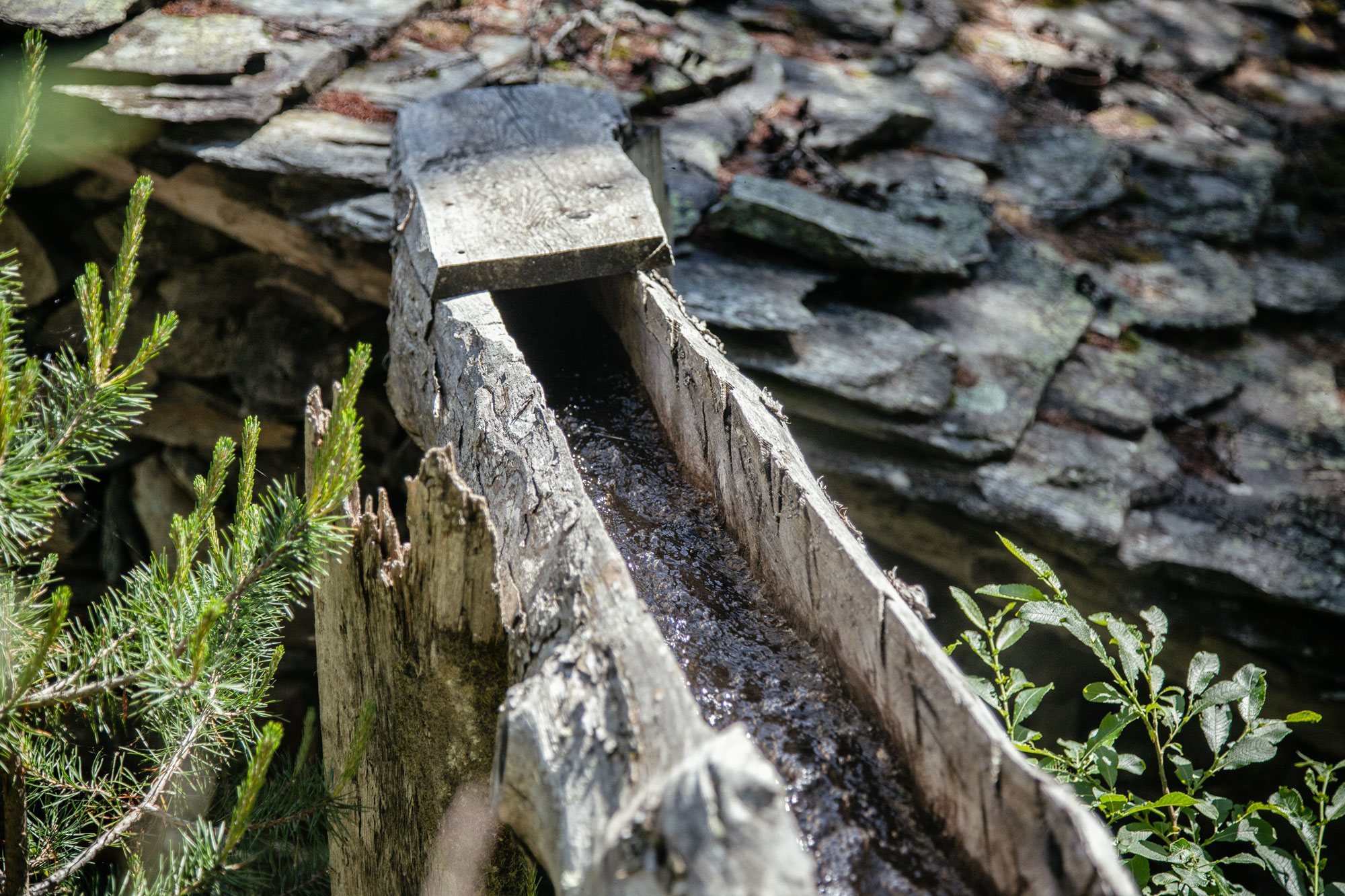 I torni del Pirlo, in Valmalenco, erano alimentati dalla forza idraulica del torrente Sassersa (o Secchione). L’acqua veniva incanalata in condotte di legno fino a una pala mossa dalla caduta dell’acqua, che azionava il tornio artigianale, dove veniva fissato il ciapùn, il blocco di pietra ollare grezza.