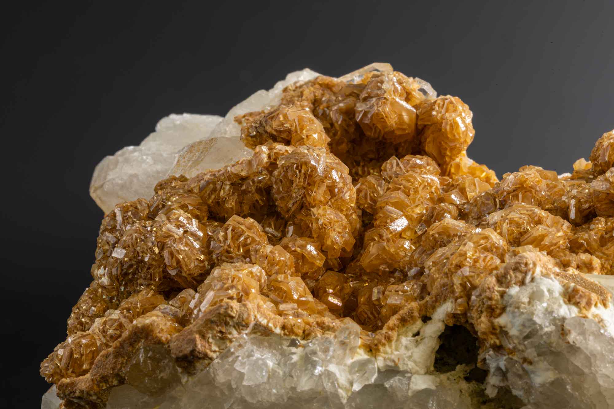 Quando si parla della magnesite di Valmalenco, il pensiero corre subito al quarzo del Doss, le cui bianche druse (aggregati di cristalli) talvolta sono ricoperte, parzialmente o in toto, da una varietà ferrifera (breunnerite) di colore bruno-aranciato e iridescente.
