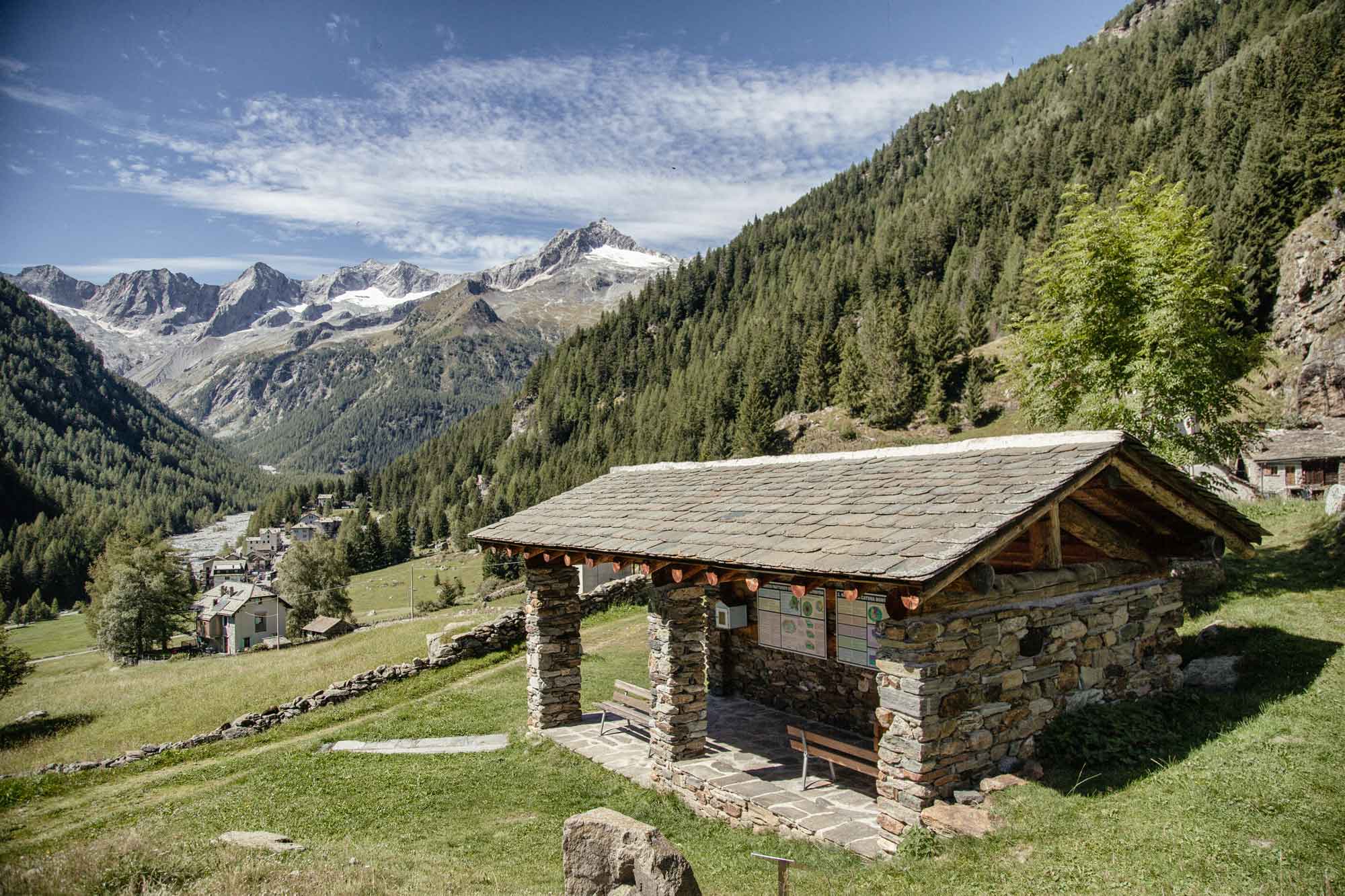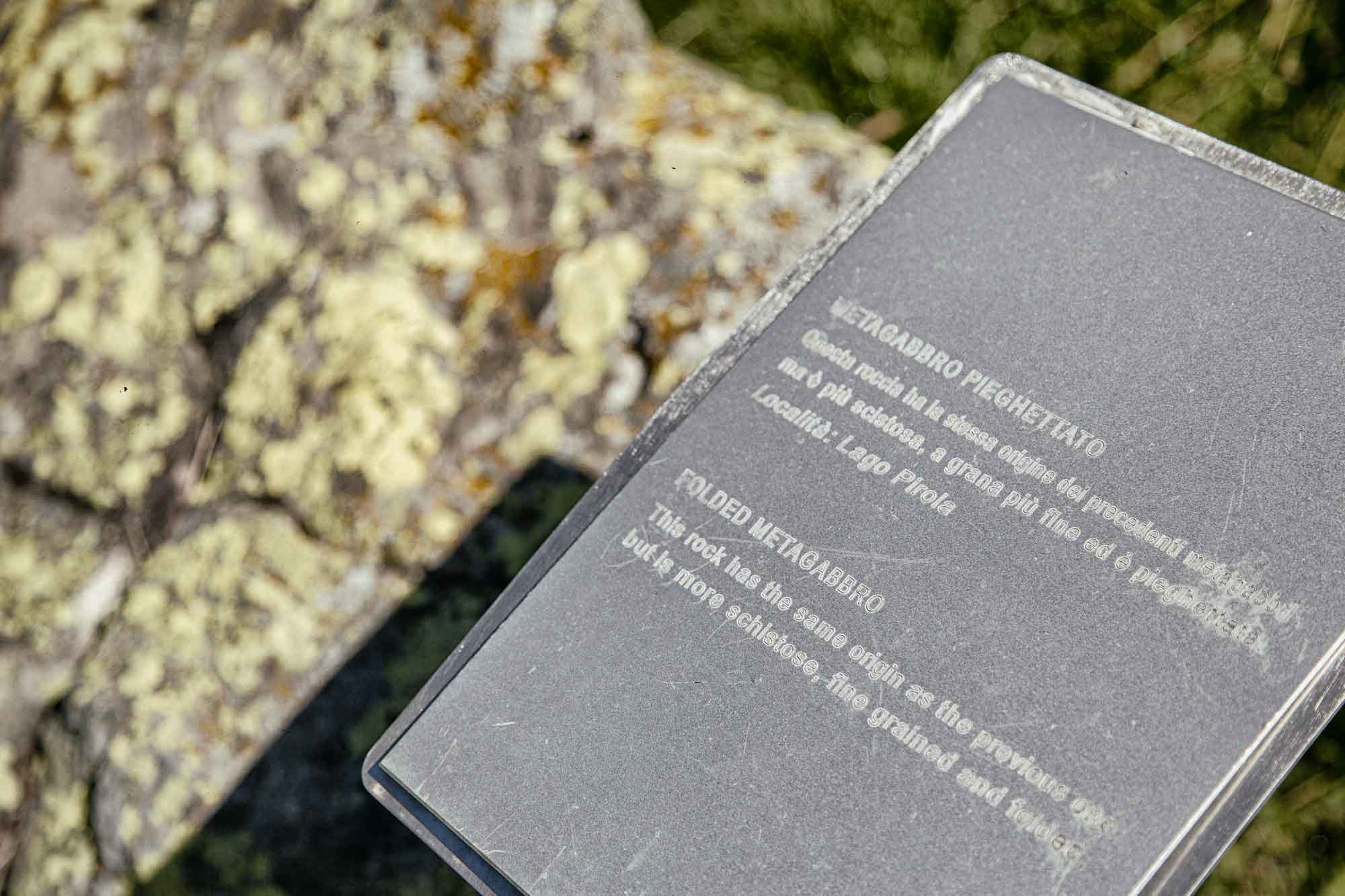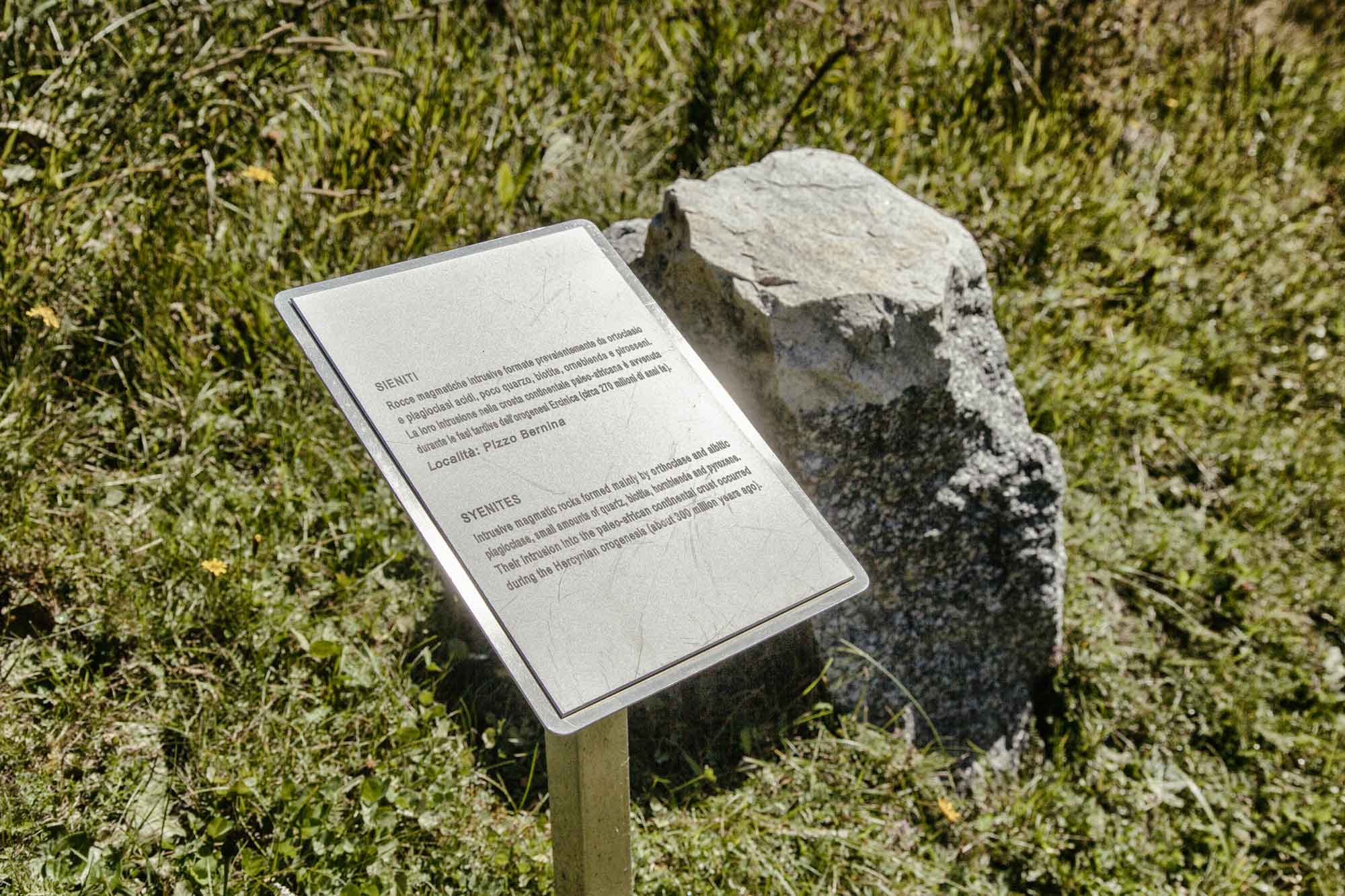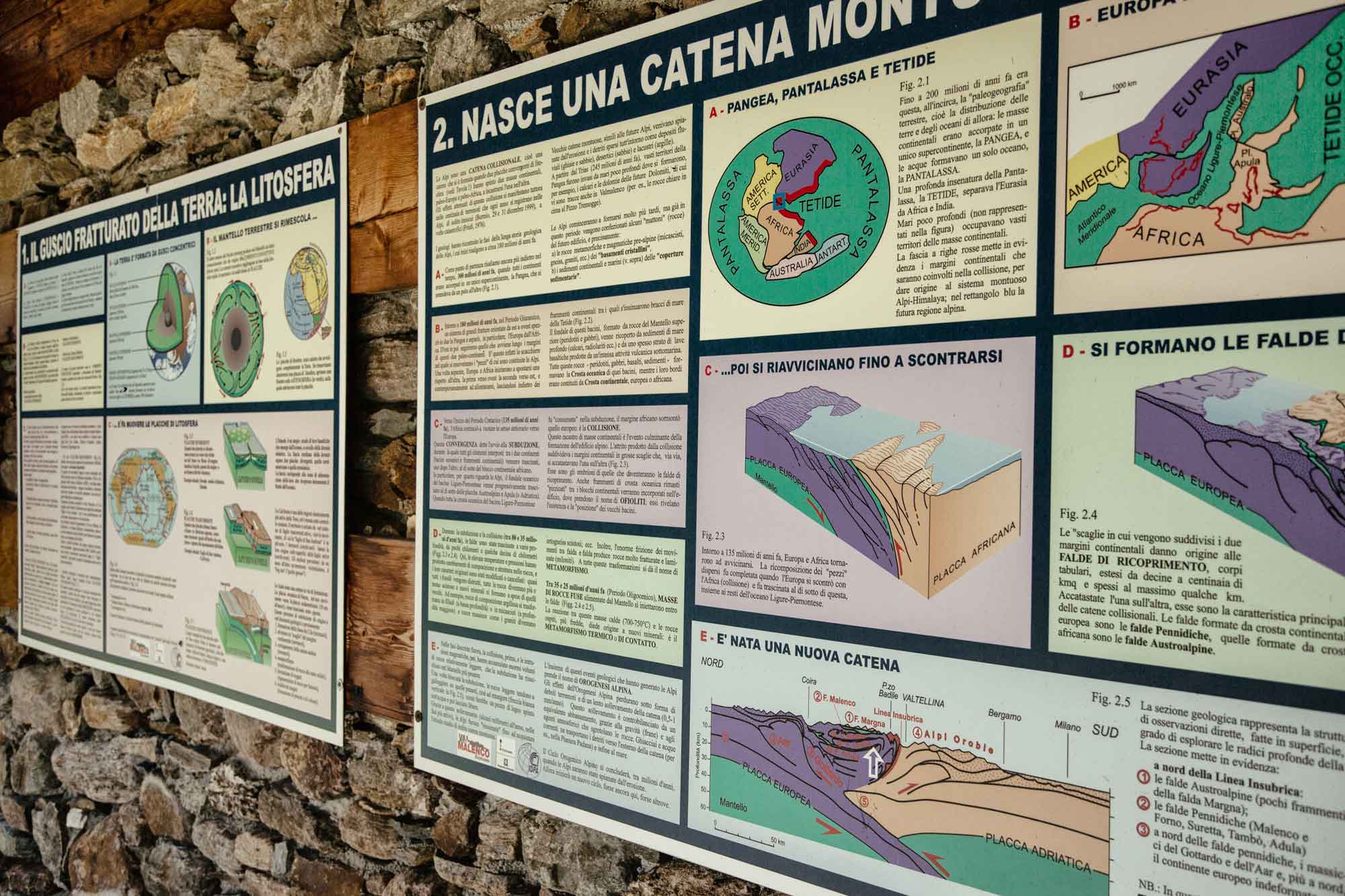 - Una tettoia ospita l'Introduzione Illustrativa, con alcuni pannelli che forniscono al visitatore gli strumenti necessari per la comprensione di alcune nozioni di geologia generale e di alcuni aspetti specifici della geologia delle Alpi e della Valmalenco.