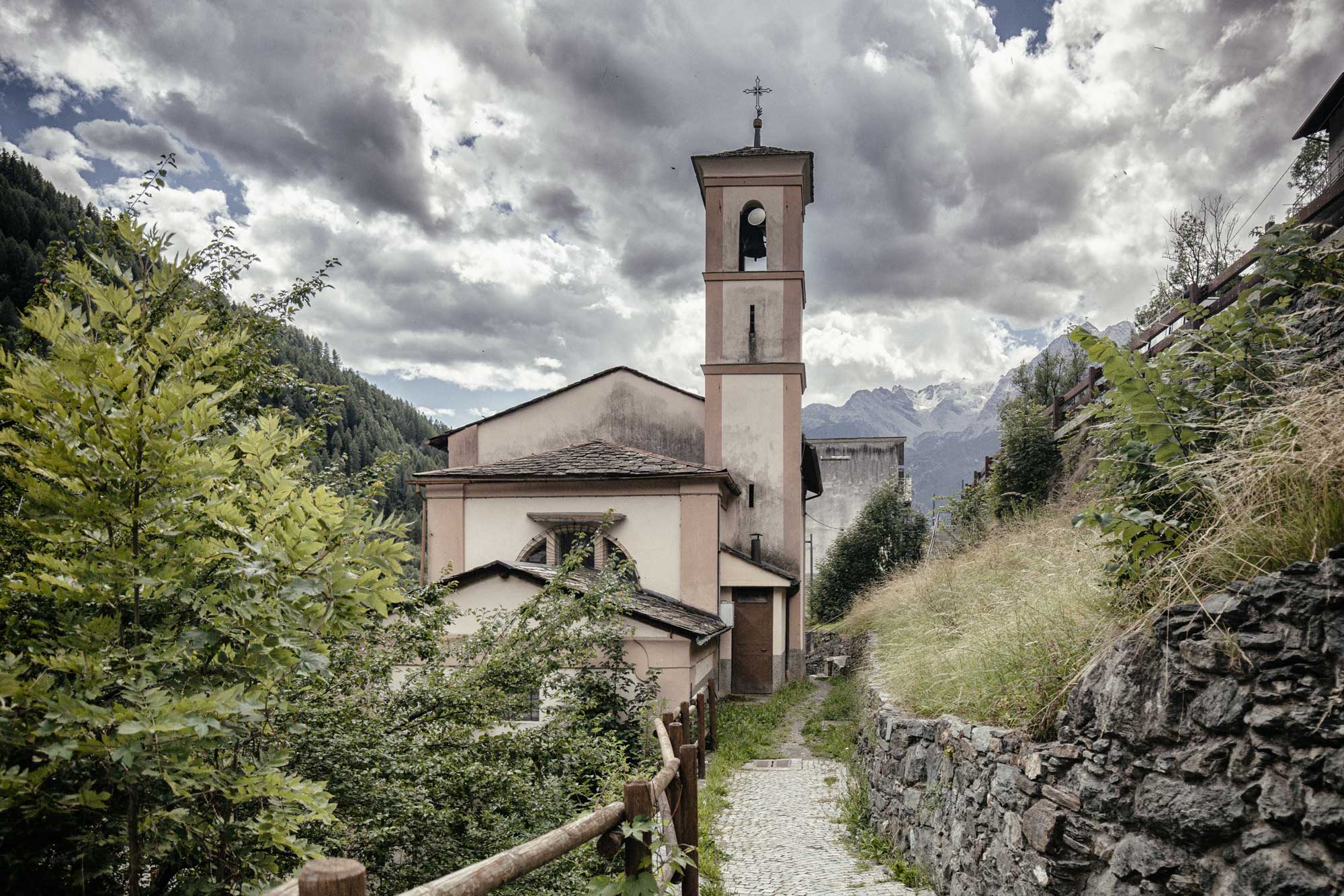 Con la diffusione della riforma protestante, anche Lanzada vide il fiorire di una comunità evangelica alquanto significativa. Per tale ragione, in conformità ai decreti del governo grigione che avevano stabilito la parità confessionale tra la religione cattolica e quella riformata e l’obbligo per i cattolici di condividere la chiesa con i protestanti laddove non ve ne fosse stata un’altra da assegnare loro, la chiesa di Lanzada fu utilizzata a turno dai credenti delle due religioni. La tradizione vuole che la chiesa sia stata persino divisa a metà da una tenda. Questo difficile stato di convivenza tra i due credo, dovette provocare non poche liti e controversie se, verso la fine del Cinquecento (1578), si giunse all’accordo di costruire, a spese di tutti, un tempio apposito per la comunità evangelica. La chiesa dei protestanti fu edificata accanto a quella dei cattolici.