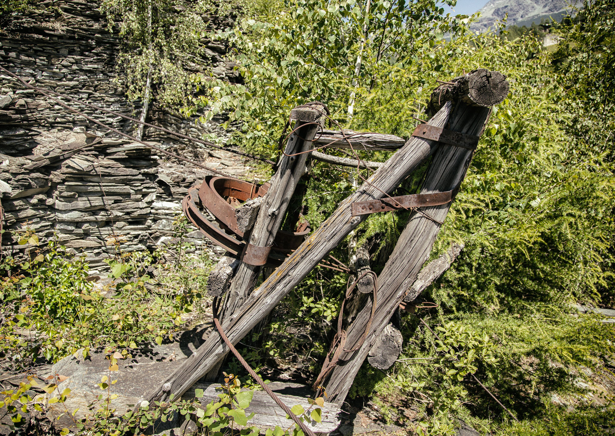 Lavorare all’interno dei giuèi era estremamente faticoso e rischioso: scarsa luce, rischio costante di crolli, fatica fisica. Si rendevano necessari muri di contenimento a secco per sostenere le banche superiori, trasformando le gallerie in vere opere di ingegneria artigiana. I blocchi di roccia venivano ridotti in löt da 30-40 kg e l’estrazione era gestita da squadre di tre giovellai, con turni tra scalpellatura, costruzione dei muri e gestione dell’illuminazione.